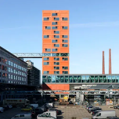 Voor Stichting Trudo bouwde Stam + De Koning eerder woontoren Haasje Over in Strijp-S, een stedelijke herontwikkeling die een bruisende woon-, werk- en ontspanningsplek oplevert. Opvallend is dat de corporatie voor de sociale huisvesting het nét ff anders aanpakt, zoals ze zelf aangeven. Bijvoorbeeld door in Haasje Over loftwoningen een plafondhoogte van 3,5 meter te omarmen, conform het ontwerp van VMX architects. Binnenin de woningen zijn de natte functies gecentreerd, zodat later makkelijk een herindeling te maken is of nieuwe functies mogelijk zijn. Qua exterieur valt de bijzondere prefab betonnen sandwichgevel op, waarbij de bewoners lekker in de uitkragende nis van de gevel kunnen zitten en kunnen genieten van het uitzicht. De markante roodoranje kleur van het geprefabriceerde structuurbeton van de gevel sluit aan bij de rode kleur van de pannendaken van de woningen in de omliggende Philips-wijken.