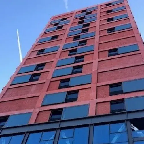 Woontoren Haasje Over in Strijp-S, een stedelijke herontwikkeling die een bruisende woon-, werk- en ontspanningsplek oplevert.