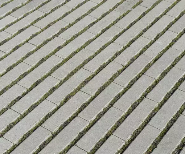 ander voordeel is dat in de spleten ruimte is om gras te zaaien. Dat ziet er mooi uit, maar zorgt er ook voor dat het stadsklimaat verbetert. “Elke bestrating