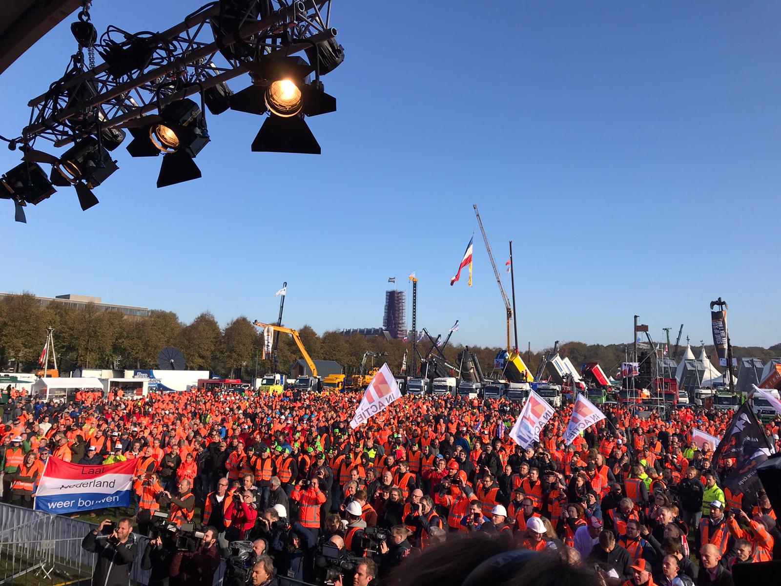 "Maar het protest gaat wel verder dan alleen werkgelegenheid. Veel van deze mensen willen bouwen. Laat Nederland weer bouwen! Er moeten nieuwe woningen en bedrijfsgebouwen komen. Ook de infra zit op slot!", aldus Ton Pielkenrood. Hij demonstreerde samen met Taco van den Broek, sectorsecretaris Bestrating en Constructief Prefab en met bestuurders Marcel Bettonvil en Hans Mascini tegen het politieke falen.