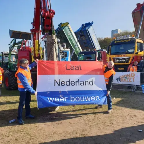 Bouwondernemers, toeleveranciers, baggeraars en betonvakmannen demonstreerden in Den Haag tegen de PFAS-norm en het stikstofbeleid. Duizenden projecten liggen stil en demonstranten willen dat het kabinet maatregelen neemt. Bestuurders, leden en medewerkers van Betonhuis waren ook op het Malieveld te vinden. De vlag - Laat Nederland weer bouwen – werd een groot succes.