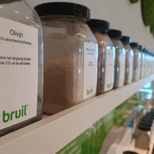 Nog meer dan voorheen is de afdeling research en development van Bruil bezig met betonmengsels waarbij de CO2-uitstoot lager is dan bij traditionele mengsels. In de ‘inspiratieruimte’ op het hoofdkantoor van het bedrijf heeft Laurens meer dan vijftig potjes met ingrediënten van beton waarmee Bruil werkt of heeft geëxperimenteerd. Zo zorgen de inspanningen er onder meer voor dat het bedrijf een CO2-arme doorstrijkmortel produceert. ,,Dat levert een MKI-waarde op die fors lager is”, zegt de duurzaamheidscoördinator.