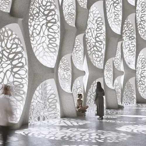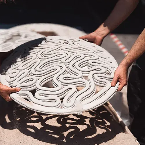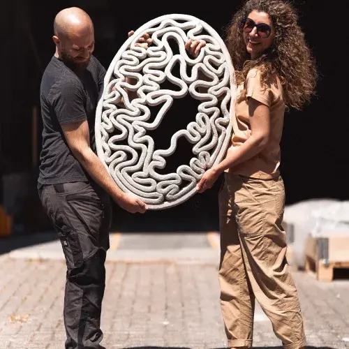 Prachtige 3D-Beton geprinte gevelelementen op zand zijn ook nog eens duurzaam