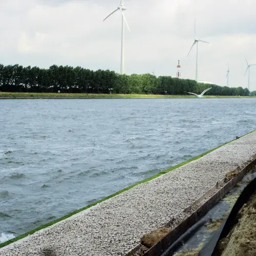 Colloïdaal beton vlakbij de waterlijn biedt een optimale oeverbescherming. Foto: Mebin