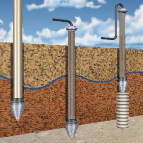 - De stalen hulpbuis heeft een los schroefpunt en wordt in de grond geschroefd.