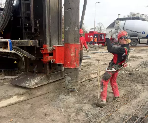- De hulpbuis is bijzonder sterk. Grote dieptes zijn mogelijk en er bestaat geen risico voor paalbreuk. Bovendien is de buis minder gevoelig voor obstakels in de bodem.