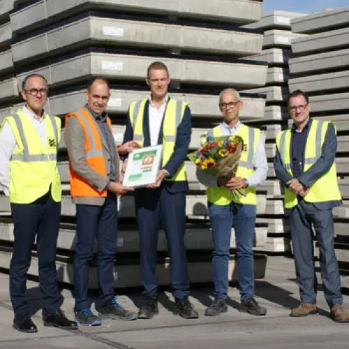 “Het gouden certificaat maakt duidelijk dat De Meteoor actief bezig is om zo duurzaam mogelijke producten te leveren. Hierbij wordt niet alleen gekeken naar het product zelf, maar ook naar het proces”, laat Klaas Huijgen, manager QHSE weten. B.V. De Meteoor is gevestigd in Rheden en maakt onderdeel uit van de BTE Groep. De betonfabriek produceert railproducten en Stelcon betonplaten die dagelijks worden toegepast bij projecten in heel Nederland. Huijgen: “Onze producten voldoen aan de eisen en normen volgens Eurocode en worden altijd geleverd met kwaliteitscertificaten. Vanaf vandaag leveren wij daar een CSC-goud bij.