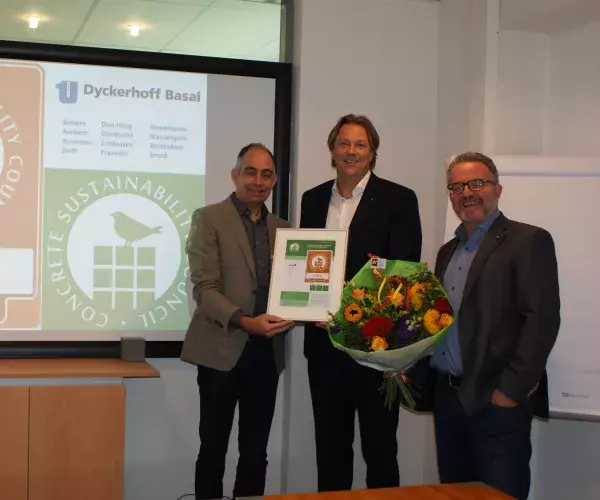 “Toen het Nederlandse keurmerk BetonBewust naar een internationaal niveau werd getrokken, zijn wij direct begonnen en wilden wij zo hoog mogelijk scoren. CSC-zilver was toen voor ons het hoogst haalbare. We hebben het afgelopen jaar hard gewerkt om zilver om te zetten naar goud door duurzamer te produceren. Ook hebben wij leveranciers aangespoord om ook duurzaam te produceren. De sprong naar goud is samen met de levaranciers tot stand gekomen”, aldus André van Maris, KVM-manager bij Dyckerhoff Basal.