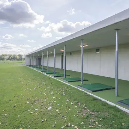 Voor alle representatieve ruimten met belangrijke zichtfunctie koos de architect voor een natuurlijke uitstraling van het beton door een afwerking met een structuur. Deze structuur wordt ook doorgezet in de aansluitende driving range waarvan de wanden eveneens in het werk zijn gestort. De architect koos bewust voor een betonnen uitvoering in tegenstelling tot veel andere driving ranges die vaak zijn uitgevoerd in houten rabatdelen. De driving range werd voorzien van een sedum-dakbedekking die doorloopt in de verhoogde delen rondom het clubgebouw.