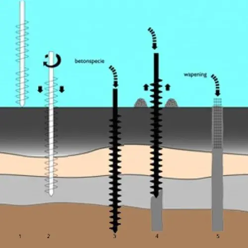 Mortelschroefpalen, avegaarpalen of schroefboorpalen. Deze namen worden gebruikt voor dezelfde typen palen.