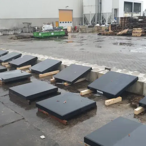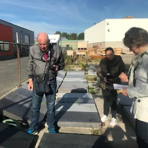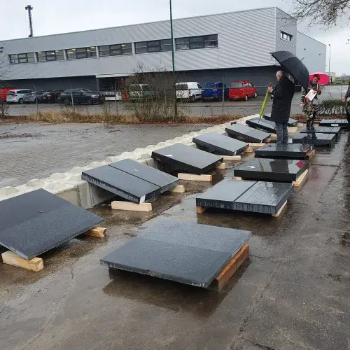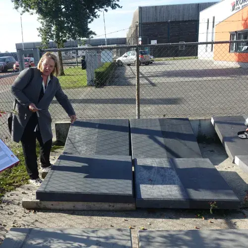De tegels uit de 'zwart beton' wedstrijd voor de derde maal gekeurd door de jury.