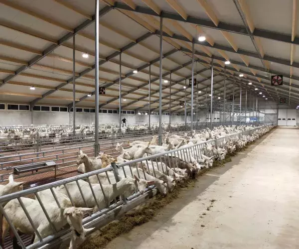 Welzijnsvriendelijke geitenstal met weinig emissies
