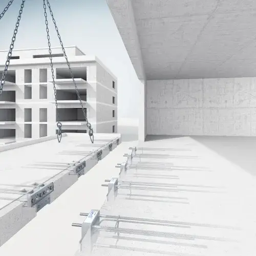 Het is een vrij simpel ophangsysteem, waarmee binnen enkele minuten balkons aan de gevels kunnen hangen. Balkons onderstempelen is een intensieve en tijdrovende klus, die met deze oplossing overgeslagen kan worden. Daarnaast behoudt het balkon zijn kwaliteit, omdat deze pas als laatste element in de bouw- of afbouwfase wordt aangebracht.