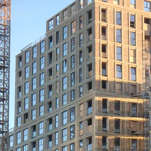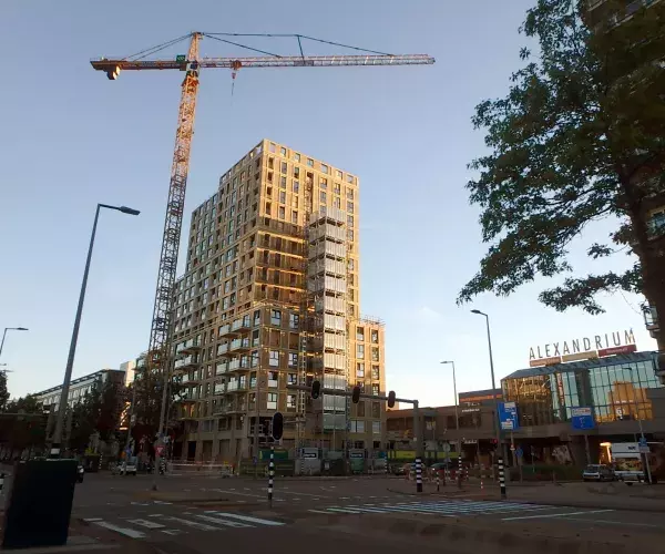 De Grote Beer in Rotterdam helpt de verhitte woningmarkt in de stad wat af te koelen. In de woontoren komen 193 appartementen, grotendeels middenhuur, die plek bieden aan onder meer starters en eenoudergezinnen die in de stad willen blijven wonen. De toren bestaat uit vier blokken die op elkaar gestapeld zijn. Op elk van deze blokken komen collectieve daktuinen. Het onderste blok sluit dankzij de extra hoge begane grond goed aan op de stedelijke omgeving. Bijzonder aan het project is dat aannemer Dura Vermeer heeft gekozen voor prefab all the way – tot aan de badkamers aan toe.