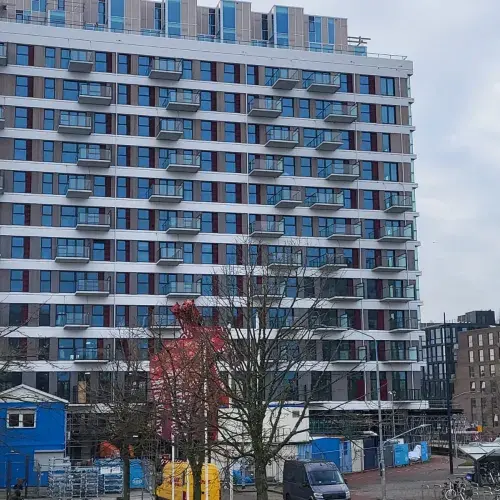 De keuze voor een bepaald type balkon heeft te maken met een aantal elementen, waaronder de kosten, esthetiek, constructie van het gebouw en de wensen van de architect. In dit geval is gekozen voor betonnen balkons van HCI. “Er zijn verschillende mogelijkheden, denk aan staal in combinatie met bijvoorbeeld hout, composiet of beton. De laatste kan tegen een stootje, is relatief onderhoudsvrij en is ideaal wanneer je een groot aantal balkons moet vervaardigen, omdat het een malproduct is. Gelukkig gaf de constructeur het groene licht voor de betonnen balkons, de bestaande constructie kan het gewicht dragen.”