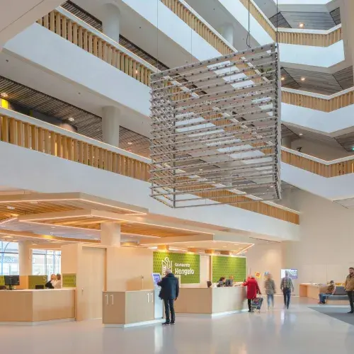 Het Stadskantoor in Hengelo was een van de ontwerpen waar Mol bij betrokken was. Het werd in 2020 in gebruik genomen. De uitdaging was om van het bestaande, monumentale stadhuis en het nieuwe stadskantoor één functioneel geheel te maken. Dat is gelukt: de onderling verbonden gebouwen hebben elk hun eigen karakter. Het rijksmonument heeft dankzij restauratie en renovatie weer een open karakter gekregen. Daarnaast ligt de nieuwbouw met een dynamisch karakter, ruimtelijkheid, veel daglicht, duurzame innovaties en ambachtelijke lokale technieken. Het casco van het nieuwe stadskantoor, bestaand uit bijzondere prefab kolommen en gestorte betonvloeren is geschikt voor veranderend gebruik in de toekomst en kan dienen als zelfstandig kantoorgebouw of appartementencomplex. Onder de aansluiting met het bestaande monumentale deel staat een bijzonder vormgegeven betonkolom, die geprefabriceerd is vanwege zijn specifieke vorm en de esthetische kwaliteit die we wilden behalen.
