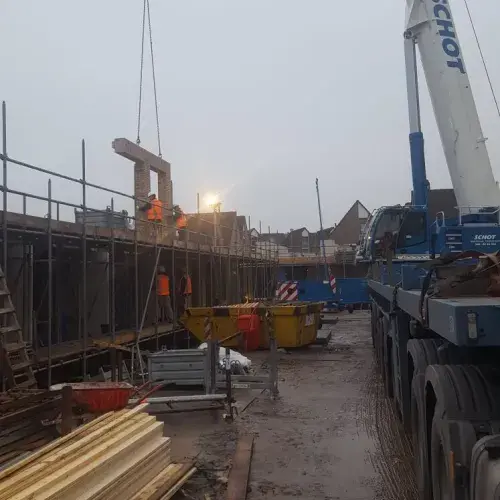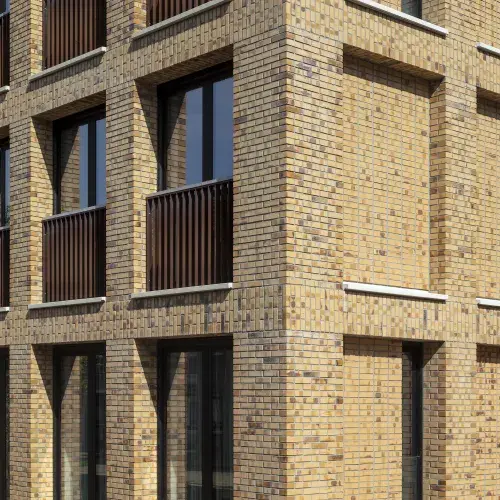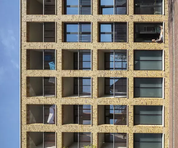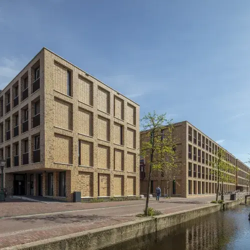 Op het eerste gezicht zijn de twee appartementengebouwen voor young professionals in het Leidse centrum een toonbeeld van baksteenarchitectuur. Sterker, de gebouwen dingen mee naar de Duitse baksteenprijs: de Frits Höger Preis 2020. Echter, achter deze façade schuilt prefab beton als ‘de stille kracht’ bij dit project. Prefab betonnen portaalconstructies voor de gevel zijn namelijk in de betonfabriek ingestort met steenstrips in dezelfde uitstraling als het metselwerk. Een illustratief voorbeeld hoe functioneel prefab beton tegelijk ook dienstbaar kan zijn aan de architectuur.
